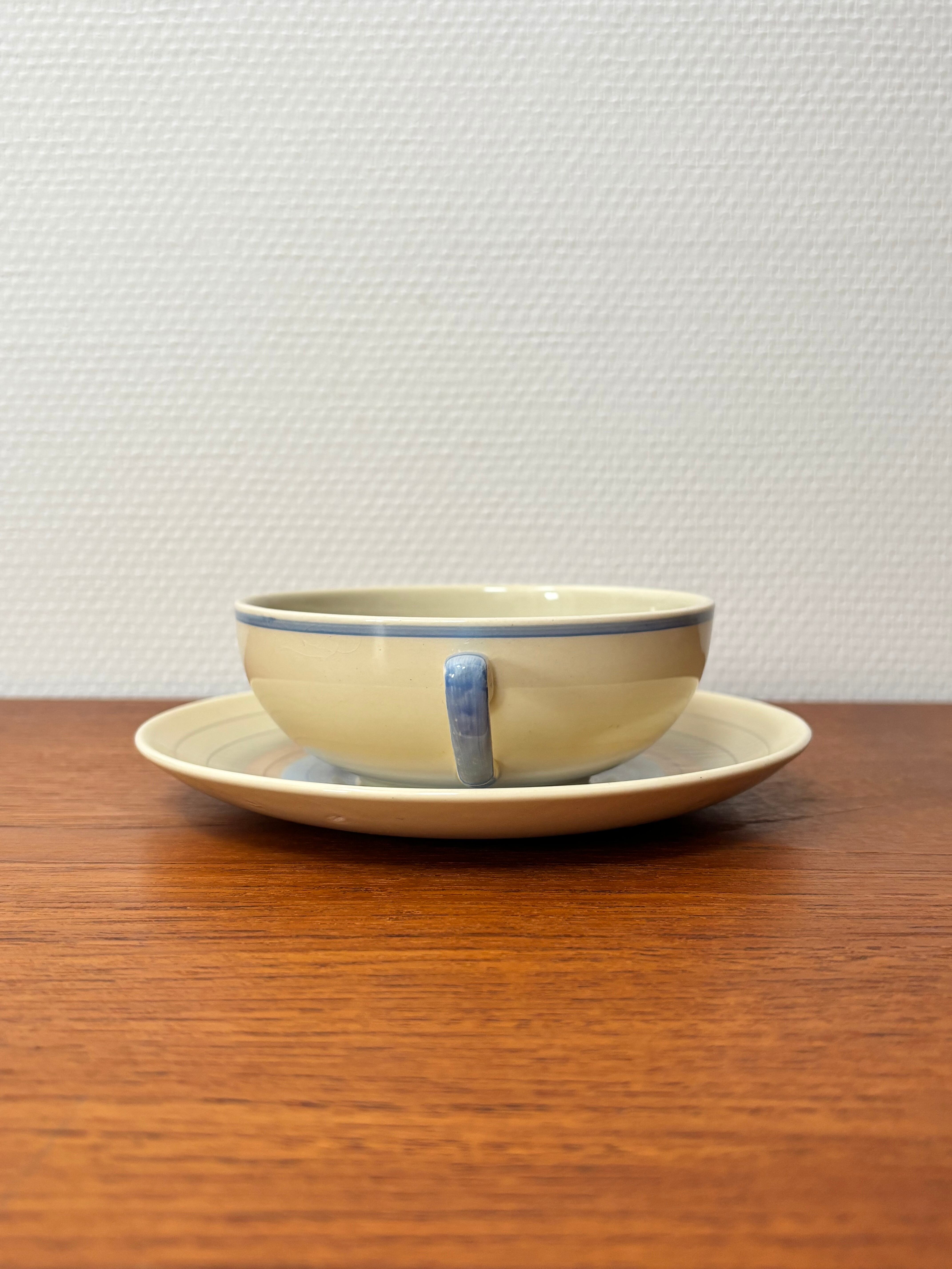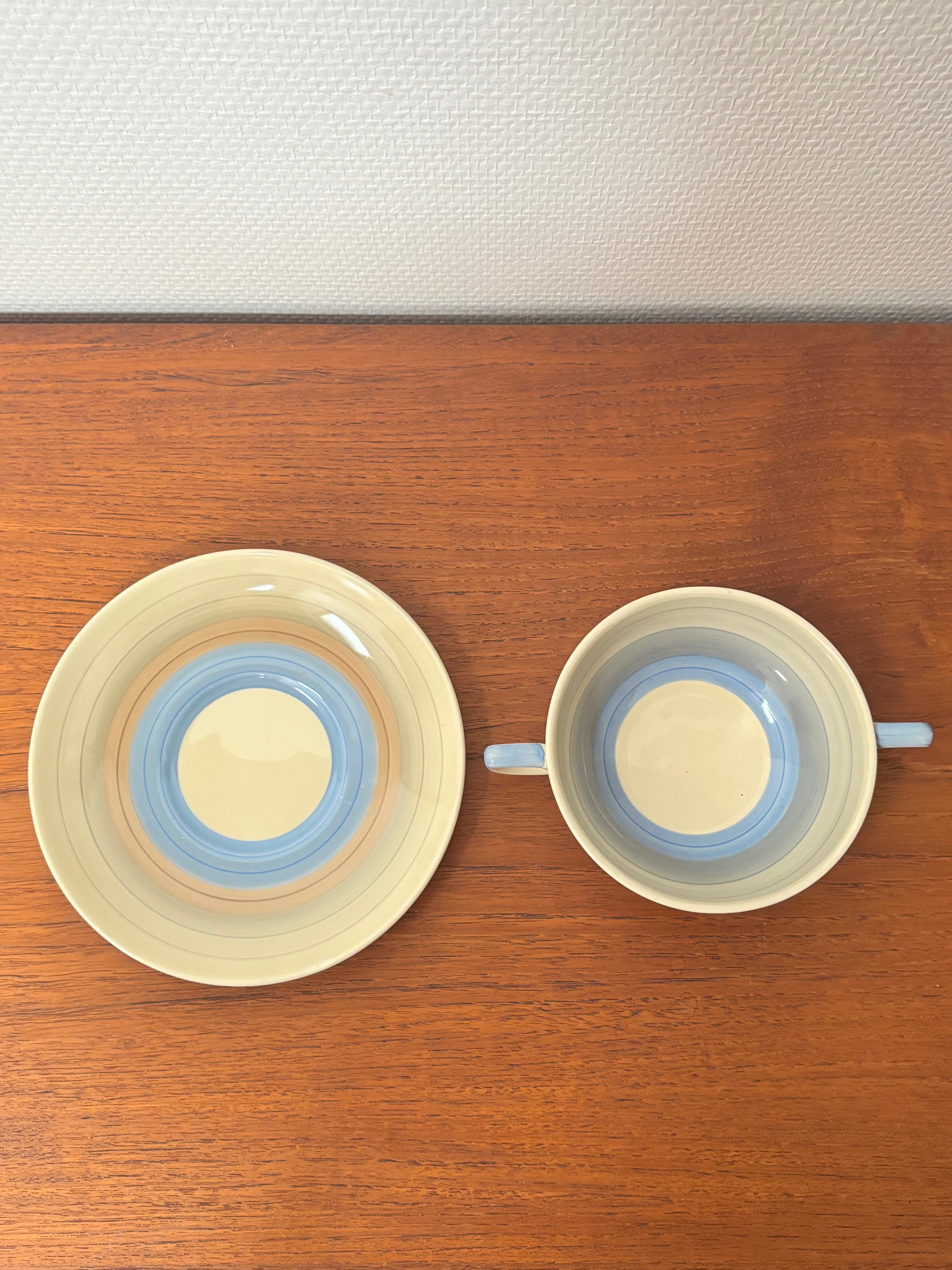 Susie Cooper スージークーパー Wedding Ring ウエディングリング 青 スープボール&ソーサー 1930s